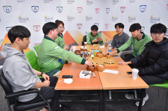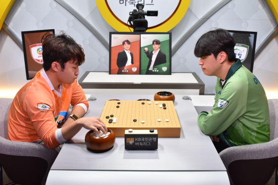 ○● 2025-2026 KB국민은행 바둑리그는 내년 2월까지 8개 팀이 더블리그 방식으로 총 14라운드 56경기를 치른다. 정규리그 상위 4개 팀이 포스트시즌에 진출해 우승 상금 2억 5,000만원을 놓고 최종 대결을 펼친다. 매 경기 5판 3선승제로 진행되며, 기본 시간 1분에 착수할 때마다 15초가 추가되는 피셔 룰 방식이 적용된다.