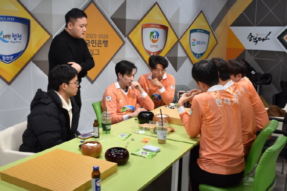 ▲ 2국 쉬하오훙의 대국을 검토하고 있는 마한의 심장 영암 선수단