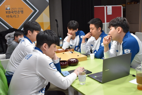▲ ‘LG배 세계 챔피언’ 신민준, 이창석(이상 수려한 합천)이 검토에 합류한 영림프라임창호 선수단.