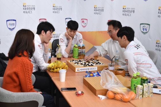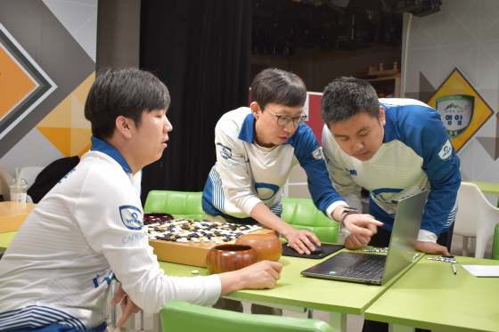 ▲ 1국 당이페이의 눈 터지는 계가 바둑을 집중 분석하고 있는 영림프라임창호 선수단