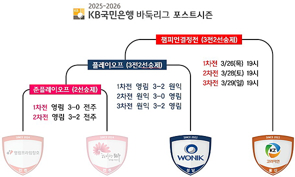 2023-2024시즌 정규리그 우승 팀 원익은 챔피언 결정전에서 울산 고려아연에게 1-2로 패하며 통합우승 문턱에서 좌절한 바 있다. 정규리그 순위만 놓고 보면 두 팀이 자리를 맞바꾼 2년 만의 리턴 매치다. 우승상금 2억 5천만원의 주인공을 가릴 챔피언 결정전 1차전은 오는 26일(목) 막을 연다.
