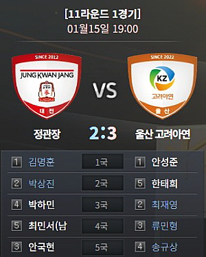 5국 울산 고려아연 송규상(4지명) vs 정관장 안국현(3지명)